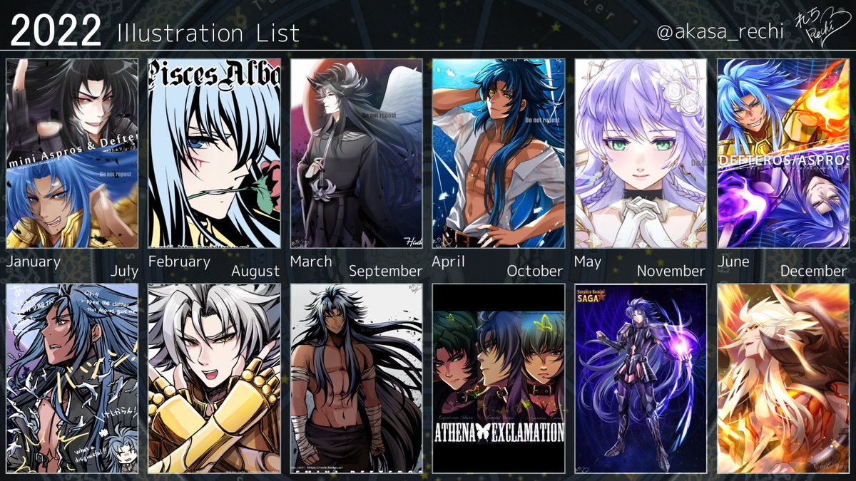 #2022星矢イラストまとめ デフテロスくんを描きまくり。10月の生産力(冥界シリーズ)は半端なかったです。テンプレは⬇️ List of Rechi's SaintSeiya Illustrations in 2022 The Underworld series I drew in October was a lot of volume and hard work, but I enjoyed it. I created a template⬇️