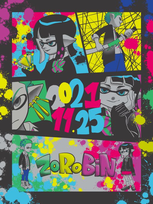 #2022秋の剣華祭 11月25日は配色アイデア手帖「RUN!」から色をいただきました。 スプラパロでゾロビンを描いてみたかったんですよね😌 ボムはトレースしました。 かわいいけどいつかもっとセンスがあるスプラパロを描きたい🎨