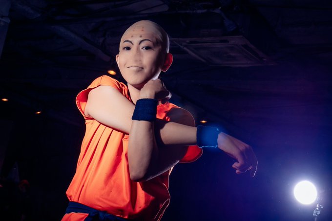 「わたくし、はるばる東の村からやってまいりました、クリリンと申します!!」 今回の衣装は亀仙流の道着ですが、いずれは多林寺スタイルもやりたいな! photo:@Mokuzai300 様 #202206RR軍合わせ