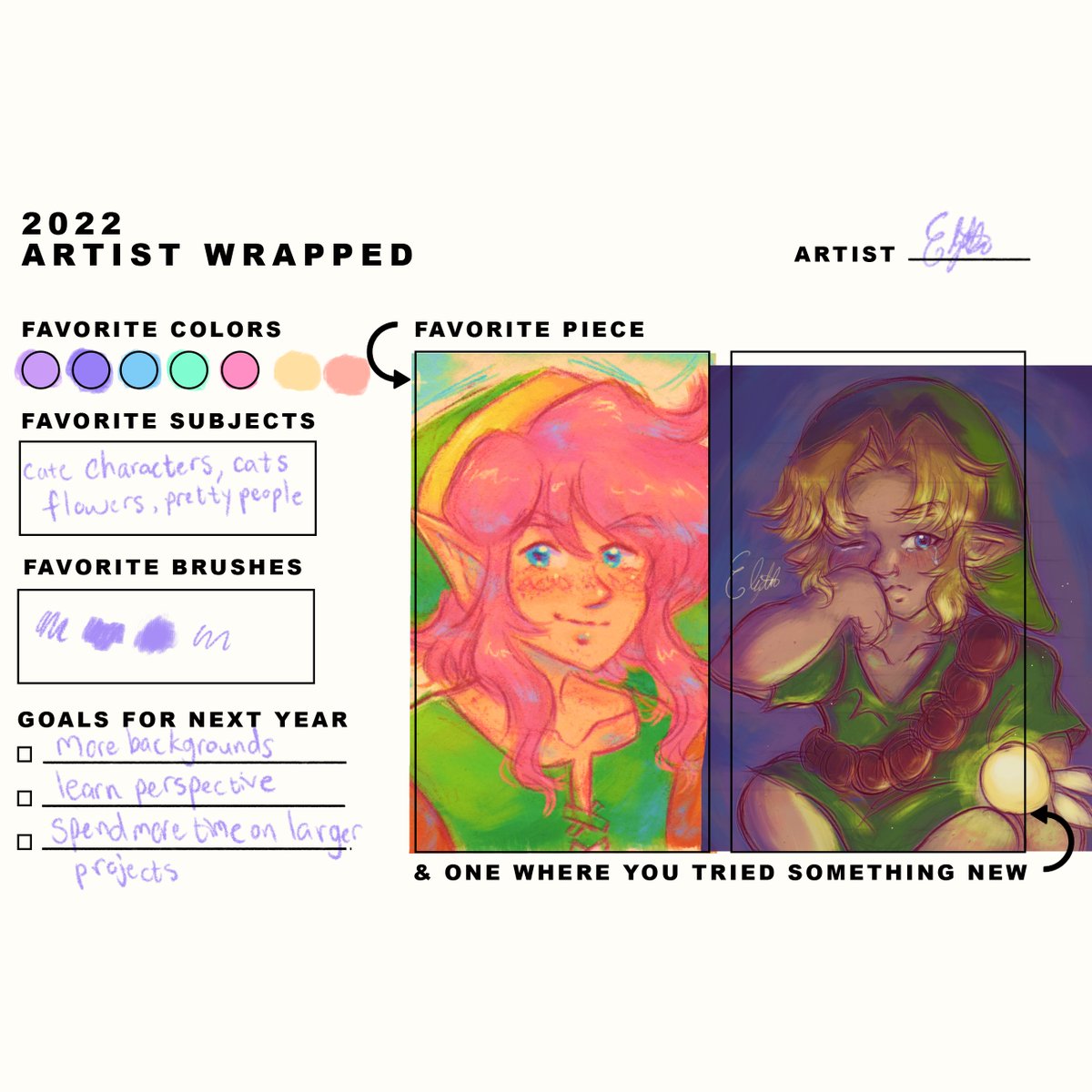 It was actually difficult because almost the entire year besides past few months have been nothing but hires from the dress up doll game, shifted skies, and flooded with art studies LOL #2022ArtistWrapped #artsummary #Artsummary2022 Template by @Taxkha [thank you!]