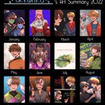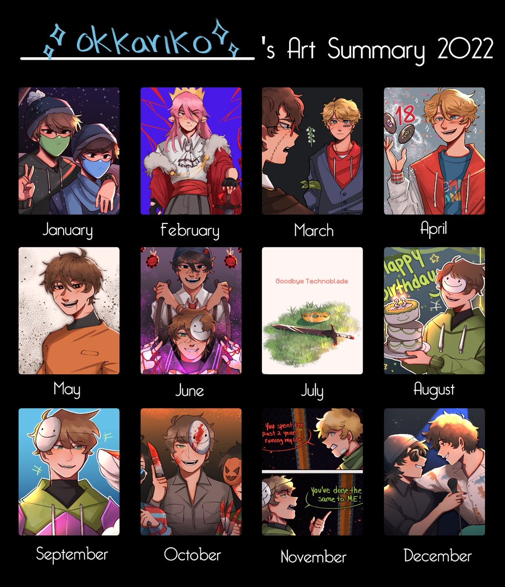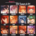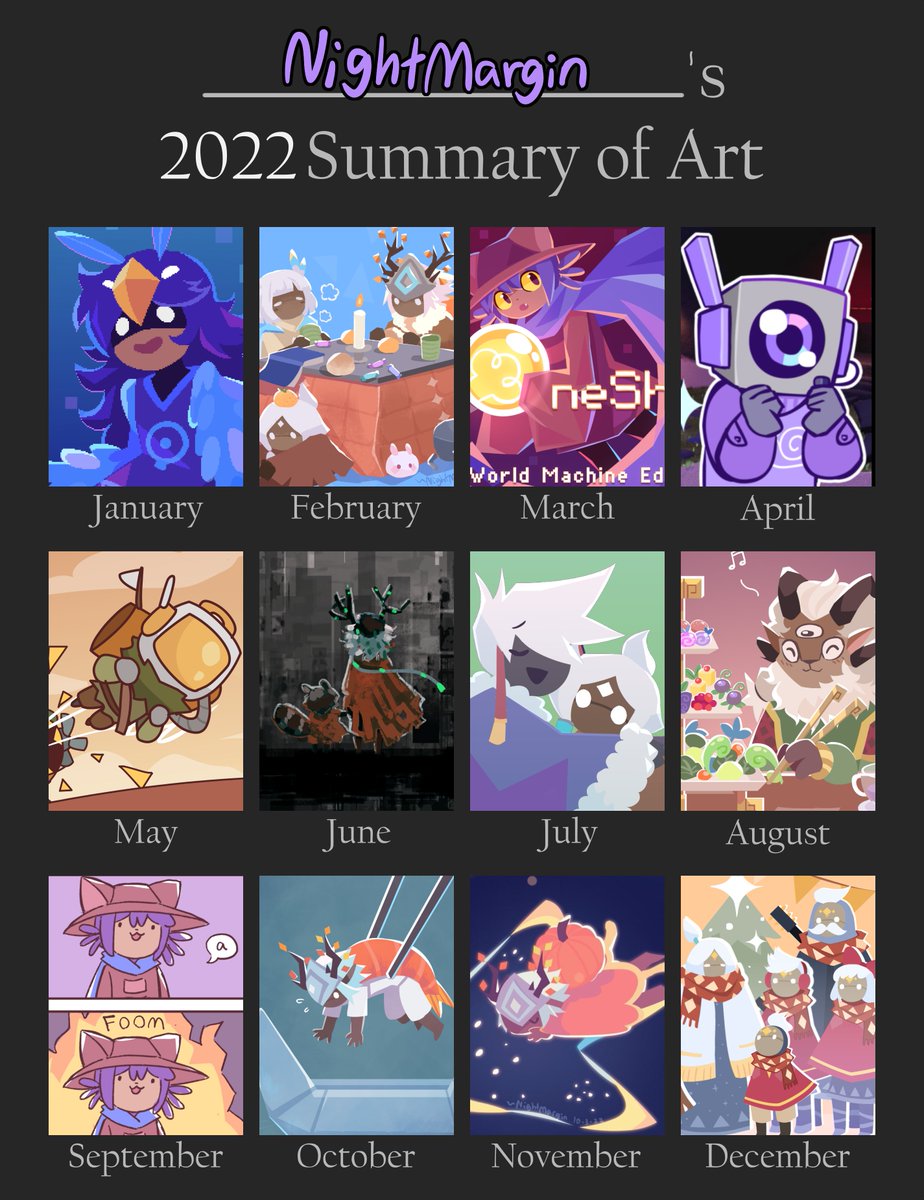 2022 was good! I dropped off a lot on dailies but I got way more done much faster than before. I think my main objective for 2023 is to give each piece revisions rather than constantly moving on from sketches. (template from dA) #ArtSummary2022 #SummaryOfArt2022 #2022ArtSummary