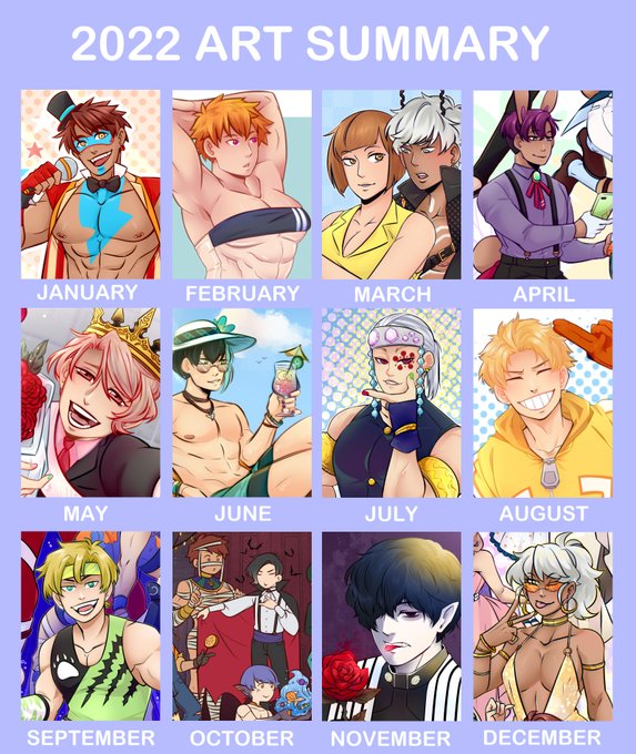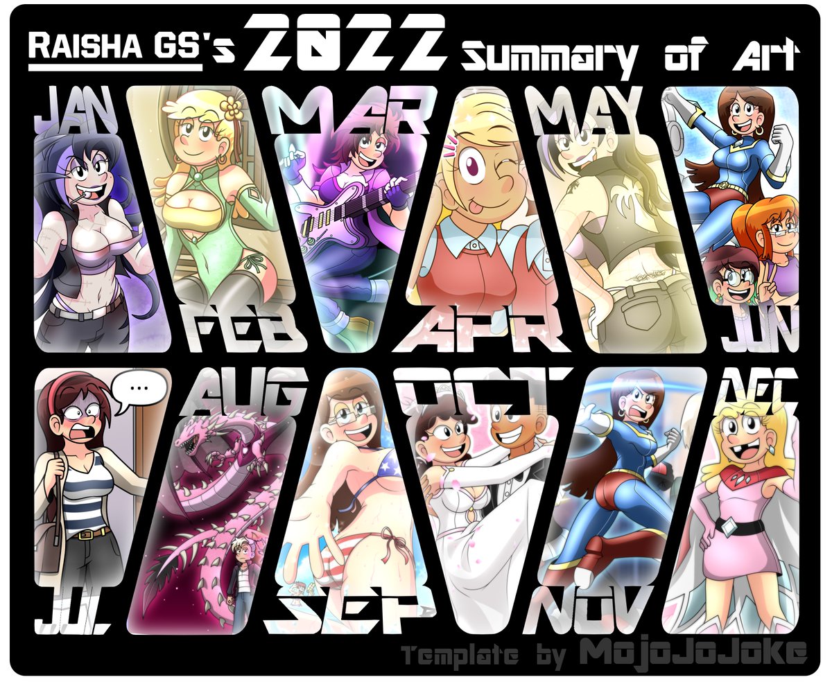 Another year, another bunch of smash hits. So here we go, these are the ones I feel like were the stars of each month of 2022! And with that, I wish all my followers a happy new year! 😄 #2022artsummary #artsummary2022 #DigitalArt #ArtistOnTwitter #MyArt #RaishaGS