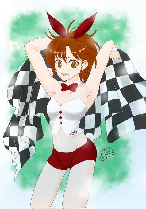 年賀絵(?)三枚目完成🐰✨ 元日からTLにいっぱい流れてきたバニー、私も乗っかってみきちゃんで描いてみたよ👯♀️ ロゴ入れて、ちょっとキャンギャルっぽくしてみた🥳 #2023年もよろしくお願いします #卯年 #うさぎ年 #バニーガール #バニー #城之内みき #サイバーフォーミュラ #HappyNewYear2023