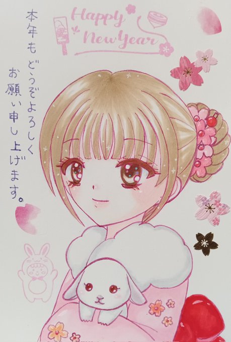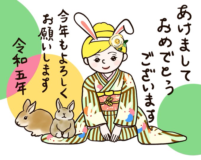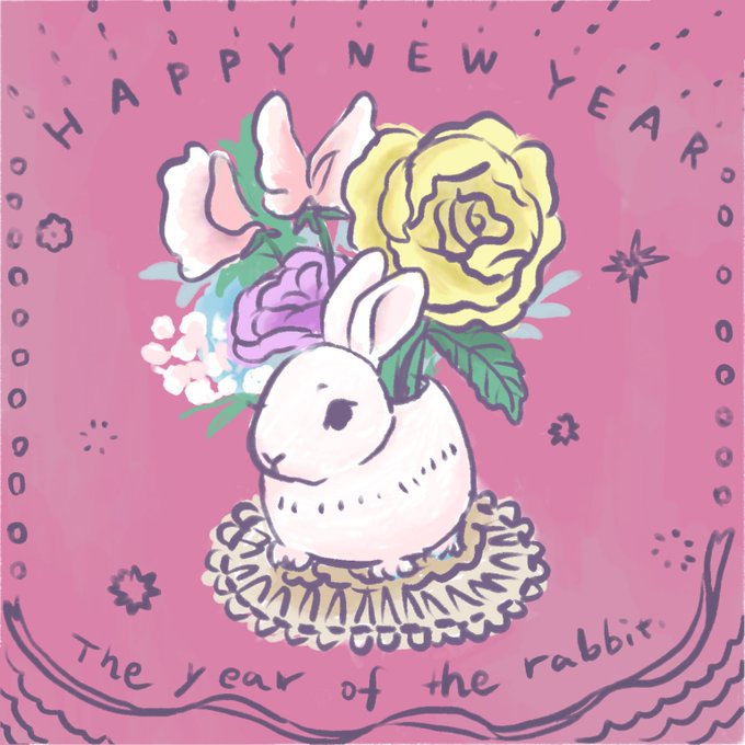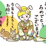 今年はうさぎ年〜!! あけましておめでとうございます🐰 今年もかわいいが溢れるたのし〜年にしていきたい! みんなの幸せも祈ってます🙏良い一年になりますように #2023年もよろしくお願いします #正月絵