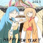 今年はうさぎ年〜!! あけましておめでとうございます🐰 今年もかわいいが溢れるたのし〜年にしていきたい! みんなの幸せも祈ってます🙏良い一年になりますように #2023年もよろしくお願いします #正月絵