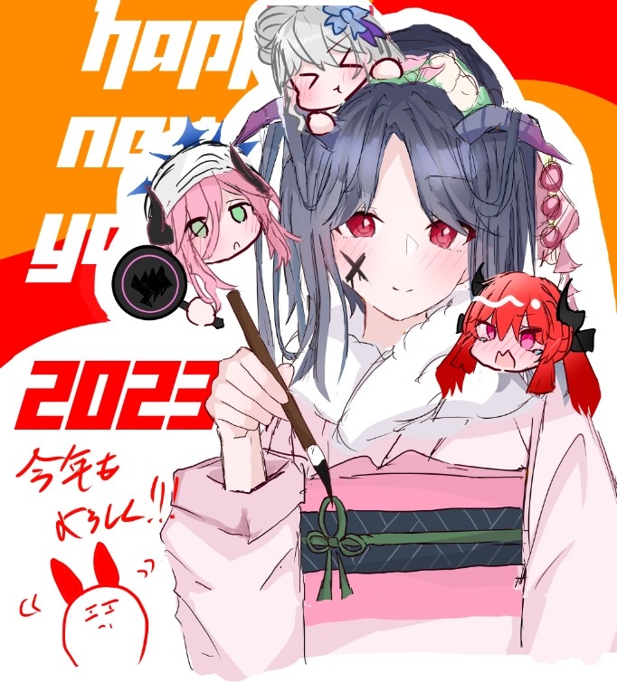 #イラスト #2023年年賀状 #うちのこ #ピクスケゆく年くる年2022 #描き初め2023 酒飲みながら年末年始で描いたので年末なのか年始なのか微妙だけど、一応描き始め sketch.pixiv.net/items/46816899…