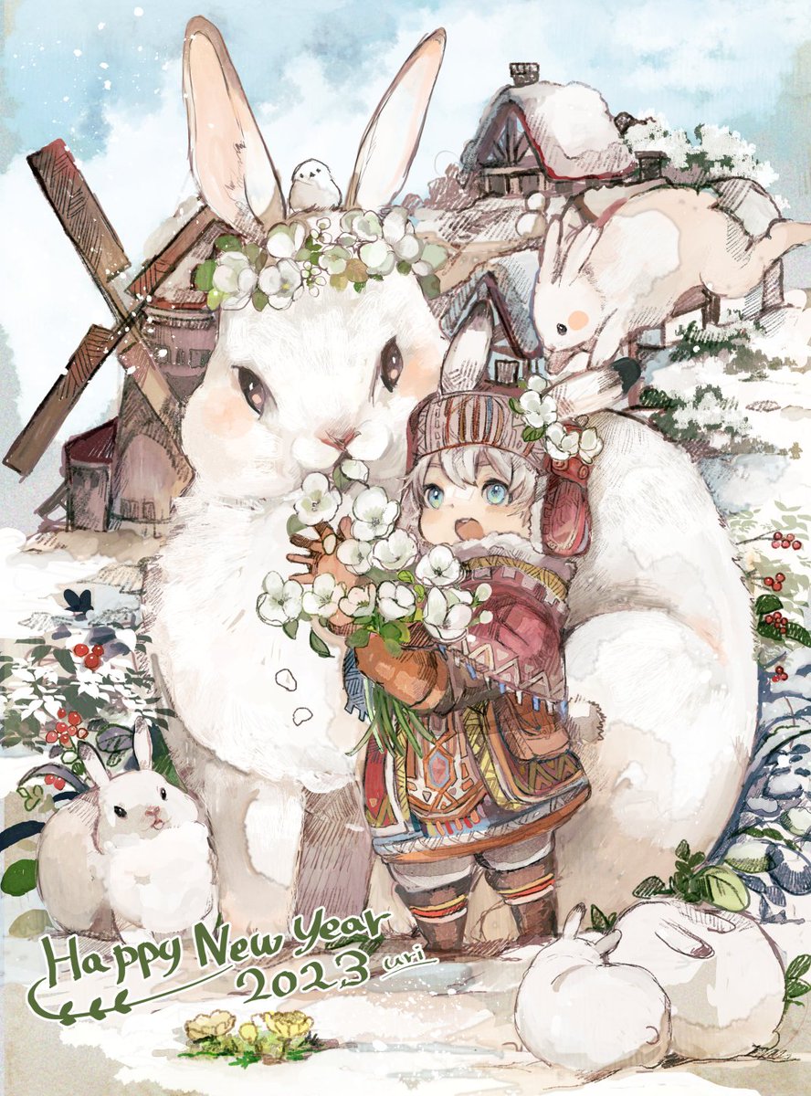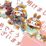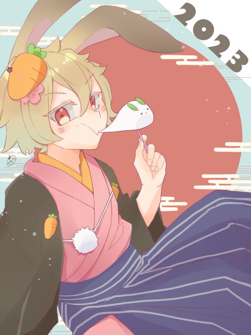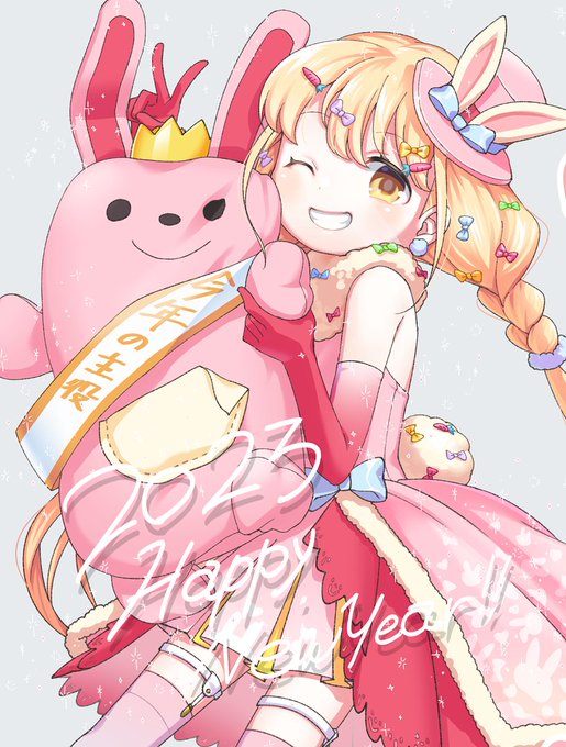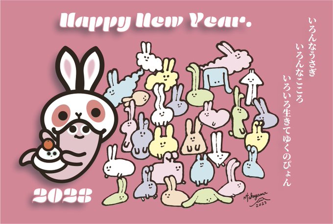 2023年の朝!明けましたよ!!おめでとうございます😀今年もよろしくお願いします!ぴょんっ…!🐰 #2023年賀状 #あけおめ #イラスト #オリジナルキャラクター #HappyNewYear #卯年