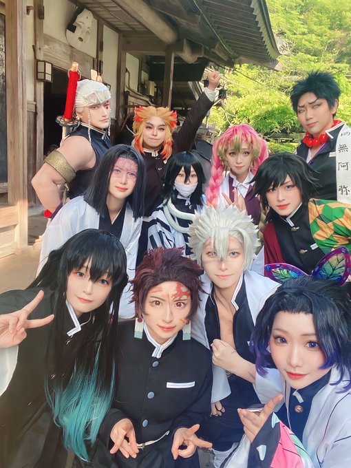 #20230527青梅会議 初めて柱全員揃って併せできてほんとコスプレ人生で1番はしゃいだんじゃないかな?と思うくらい楽しかった(写真は虚無顔だけど😂) 目の前に大好きなキャラたちがいて心が小学生になった……