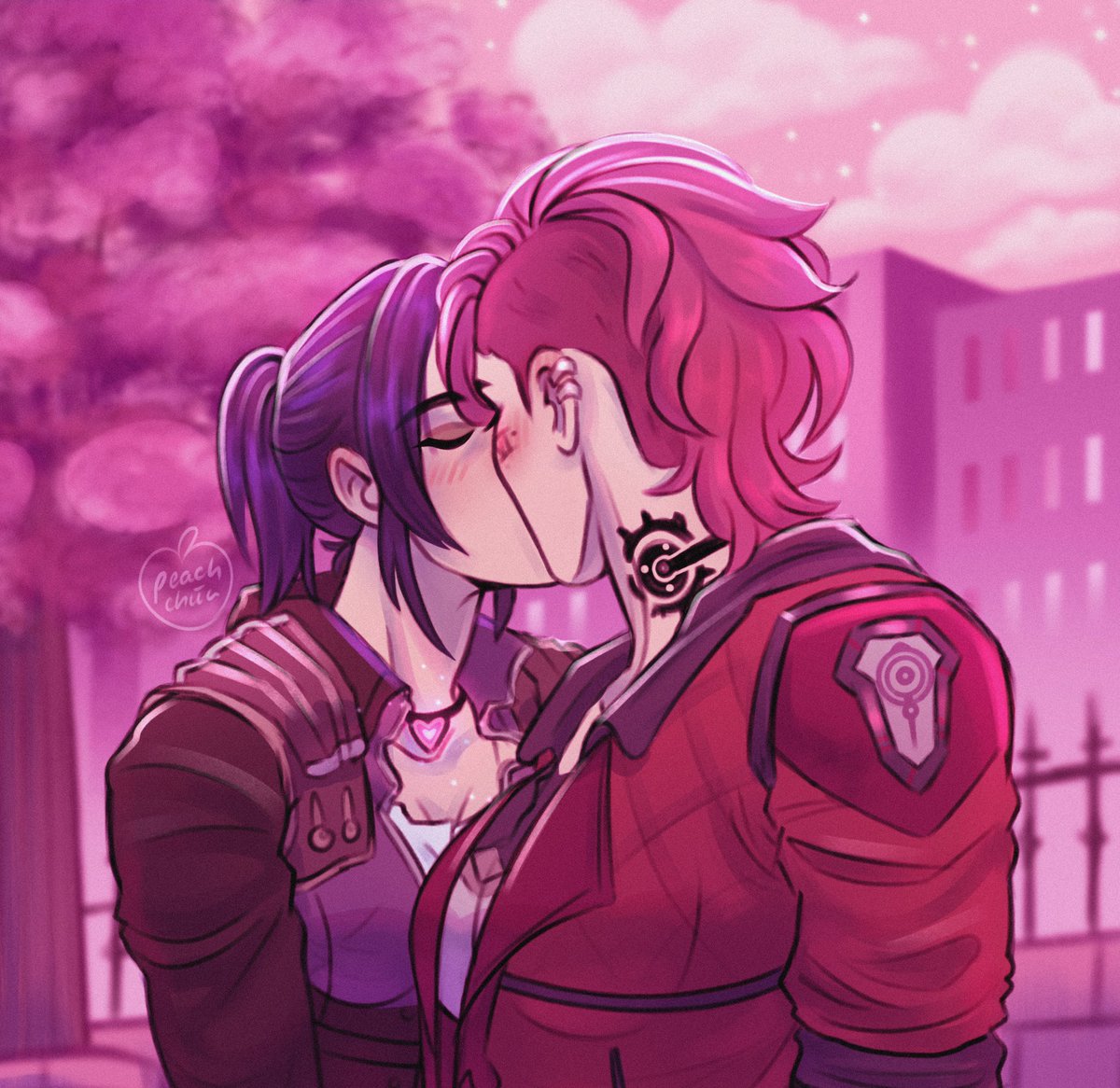 here's to day 1 of the #20daycaitvichallenge!! 🥰 prompt: kiss ❤️ #caitvi #violyn #arcanefanart #arcane #piltoversfinest