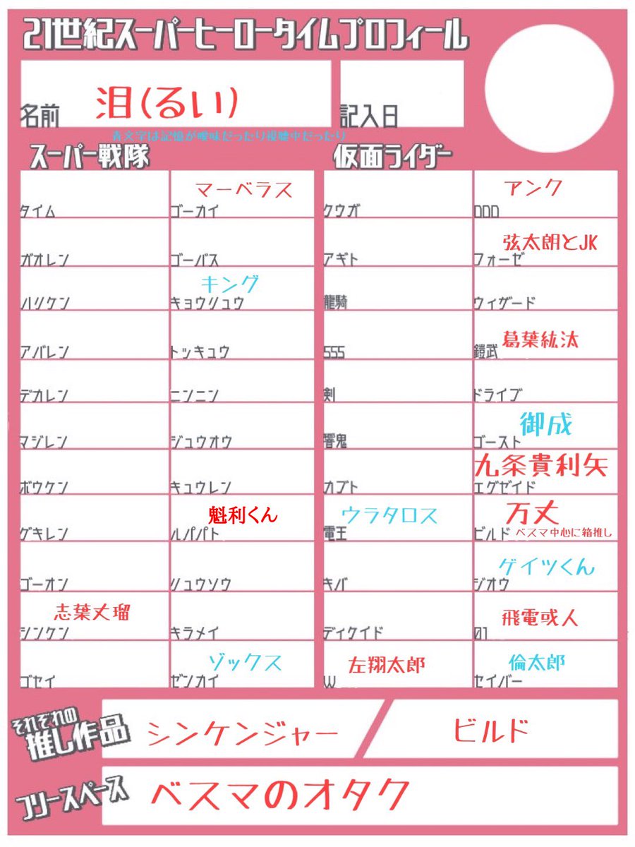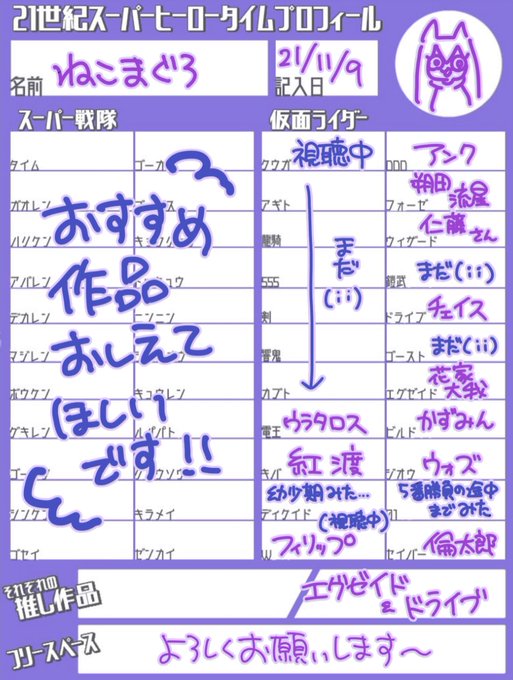 #特撮好きと繋がりたい #特撮絵描きさんと繋がりたい #21C_SHTprofile 拙い字や絵を描いてる者です。 この他、つぶやや特撮、地方ヒーローも大好きでございます。 同担歓迎なので反応くださった方、是非繋がりましょう!