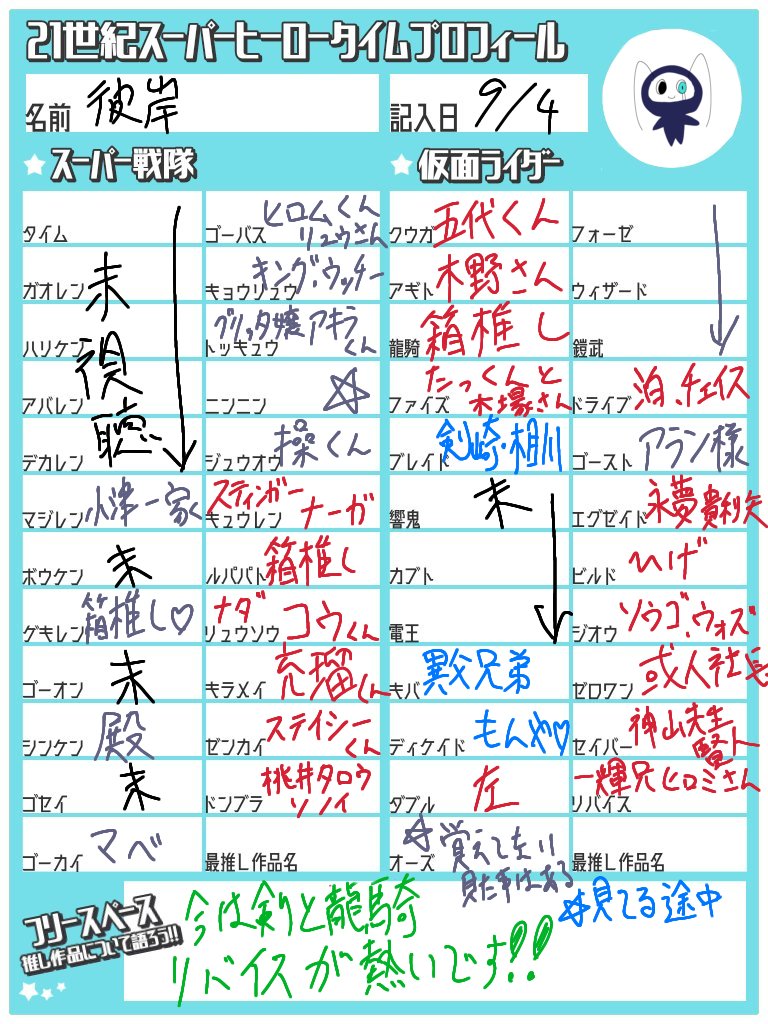 亀さんで特撮の推し絵描いてます!いいね&RTで気になった方を無言でお迎えせていただきます!良かったら仲良くしてください😊 テンプレートお借りました! #特撮絵描きさんと繋がりたい #21C_SHTprofile