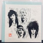今年の出品作品ご案内(069) エアロスミスにインタビューしたときのイラスト(88年、GORO)。 仕事なのに、アシスタントの由香ちゃんと友人漫画家のしゅりんぷ小林さんを連れて行ってもOKだった、そんな時代w(雅) #MはミステリとメタルのM展 #22年10月13日〜19日 #吉祥寺リベストギャラリー創