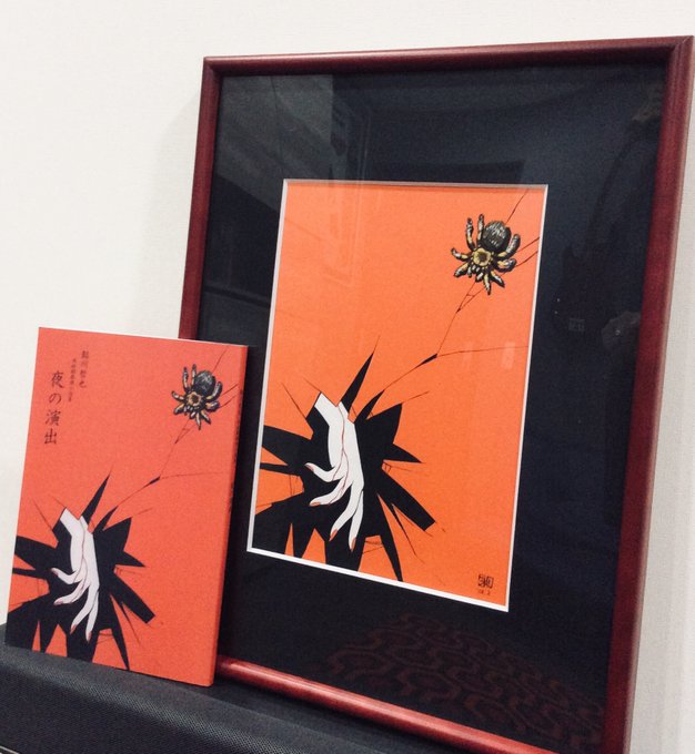 今年の出品作品ご案内(033) 鮎川哲也著『夜の演出』('08年)原画 「未収録推理小説集」と銘打たれた二百部限定の同人誌の表紙です。鮎川さん関連では『鮎川哲也読本』の表紙も描きましたが、そちらは未発掘です(雅) #MはミステリとメタルのM展 #22年10月13日〜19日 #吉祥寺リベストギャラリー