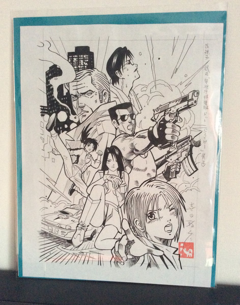 今年の出品作品ご案内(034) 我孫子武丸著『警視庁特捜班ドットジェイピー』('08年)表紙ペン入れ原稿。憧れの大先達、生頼範義さんみたいな構図で描きました。あ、怒らないで(汗)。 彩色済みの原稿は後日ご紹介(雅) #MはミステリとメタルのM展 #22年10月13日〜19日 #吉祥寺リベストギャラリー