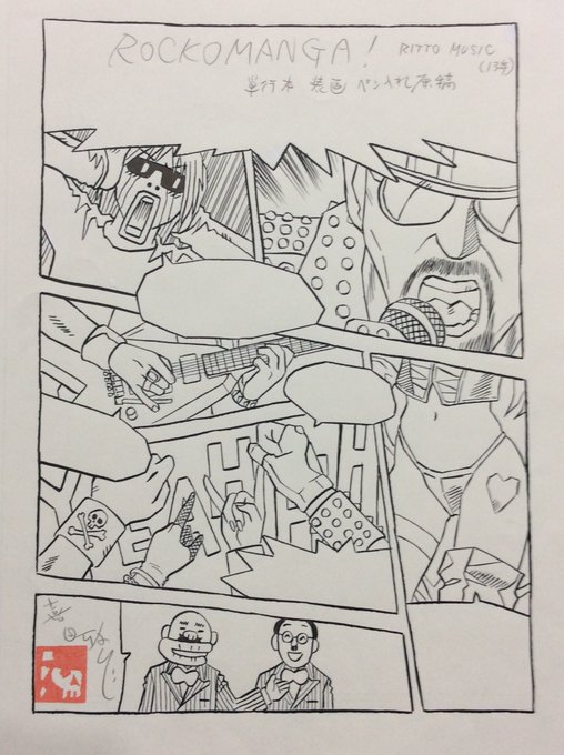 今年の出品作品ご案内(057) 『ROCKOMANGA!』のカバーイラスト原画。 デジタル着彩なので、カラー原画はありません。1巻目が出るのに23年かかりました。さて2巻目は!?(雅) #MはミステリとメタルのM展 #22年10月13日〜19日 #吉祥寺リベストギャラリー創