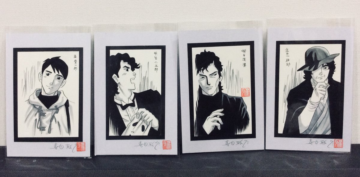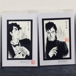 今年の出品作品ご案内(062) 和洋の名探偵ミニイラスト。亜愛一郎、明智、御手洗、金田一、コロンボ、ブラウン神父、エラリー、ホームズ、レーン、ポアロ。とかいますが、さて、どこに描いたヤツだっけ?(雅) #MはミステリとメタルのM展 #22年10月13日〜19日 #吉祥寺リベストギャラリー創