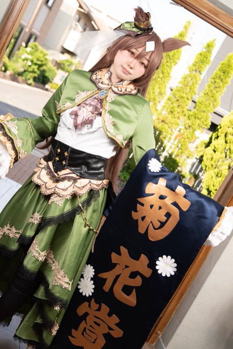 大型併せの際に、ハヤヒデが勝ったG1レースの優勝レイ(を真似して作ったもの)を持って写真を撮らせていただきました✨ 推しの栄光嬉しい💕💕💕 Cosplay** ウマ娘 ビワハヤヒデ 📷✨ 菊花賞・宝塚記念 @jishitsu 天皇賞(春) @yuzo_asyria #220529サンパティック記念 #コスプレ