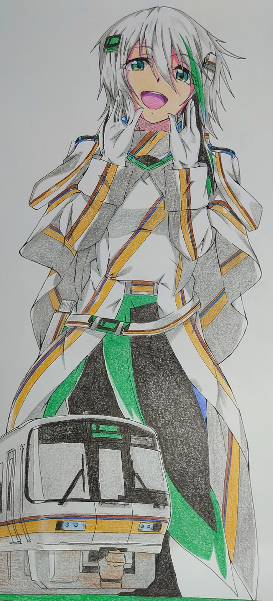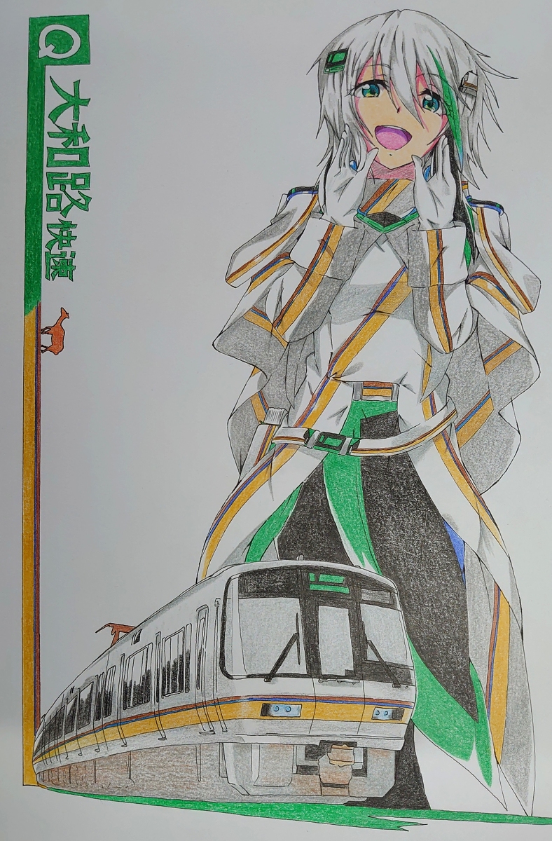 #221系 #大和路快速 #JR西日本 #関西本線 #色鉛筆 #絵描きさんと繋がりたい #創作クラスタさんと繋がりたい #原作の隣に自分の作品を貼る #擬人化 #Artist 西日本の元祖イケメン電車 “221系” アーバンネットワークを支える看板娘! そして“平成史”を知る三十路でもある。