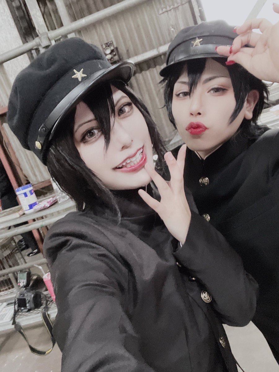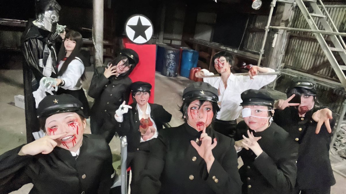 【※コスプレ注意※】⚠️3.4枚目血糊 昨日のライチ併せの写真~!!!! 揃わなかった残念と思っていたけど全員集合のシーンでサブ📸のおふたりがニコとデンタクやってくださって全員の写真撮れて感無量😭🙏🏻✨ たつきさんとライチや背景作って行って背景再現出来たの!💓 #221009ライチ血みどろクラブ