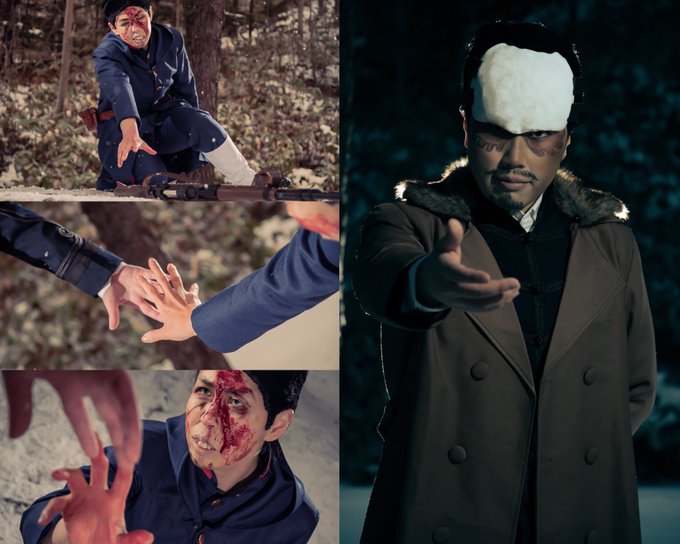 ⚠️Cosplay·血糊 / ゴールデンカムイ ⚠️ 鯉登少尉:まめ子 月島軍曹:ぉーきさん(@uLT3GRa2UR3) Photo:雫さん(@s2mugen ) #Cosplay #コスプレ #221211蝦夷列車地獄行き