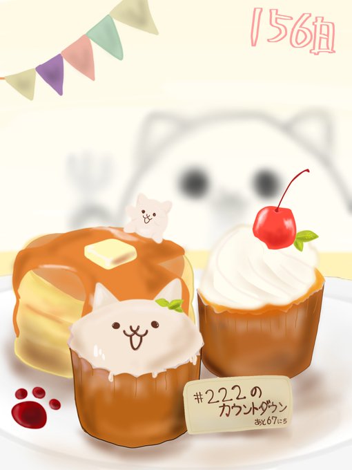 #222のカウントダウン #にゃんこ大戦争 #イラスト 156日目担当のロックメンと申します! にゃんこのカップケーキを描いてみました!! 2回目ということでいつもとちょっと違うタッチにしてみました!!!
