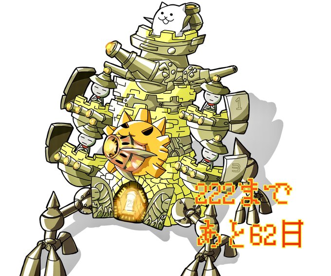 #222のカウントダウン #にゃんこ大戦争 #絵描きさんと繋がりたい 被ってしまったのはしょうがないので上げます!! 22日目担当のロックメンです!! にゃんこの気まぐれプレート 〜基地にあったもの仕立て〜