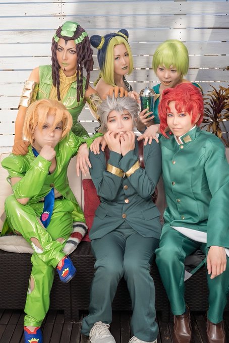 【cosplay】 ✵JOJO✵グリーン🟩併せ 美女3人と野郎共と思ったら康一くん囲む会になってた😂(めちゃかわデシタ💗) 📸 @utapyon0403 #うたart #230416ジョジョ色々併せ 花京院 @yuyu65275833 康一クン @11seyu14 徐倫 @YEternalwind エルメェス @getaro69 FF @46retsu_cs