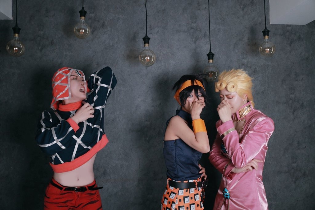 JOJO ※cosplay part5-Golden Wind- 『くっくさいッ!この体臭いわぁ~っ!!』 「あんまりこっちに来ないで下さい」 「言いすぎだぜお前…うわ臭ッ」 🔫@otoma_cos24 🍊@kakotarou800 🐞@yuntarooo214 📸@dkm7326 #230416ジョジョ色々併せ
