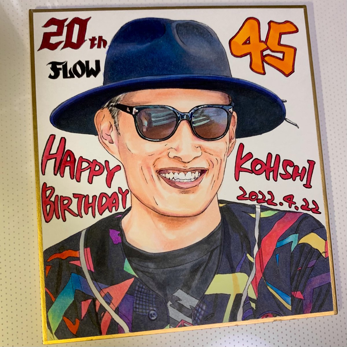 KOHSHIさん 誕生日おめでとうございます✨🎉 【FLOW】Vocal『KOHSHI』㊗️45歳😎 バースデー記念イラスト色紙 2022 FLOW 20th ANNIVERSARY【突入企画】 FLOWバースデー色紙約4年ぶりの復活です‼️ 長らくお待たせ致しました!!! 次回、KEIGO🌟 #KOHSHI誕生祭 #26ers #FLOWの賽は投げられたツアー