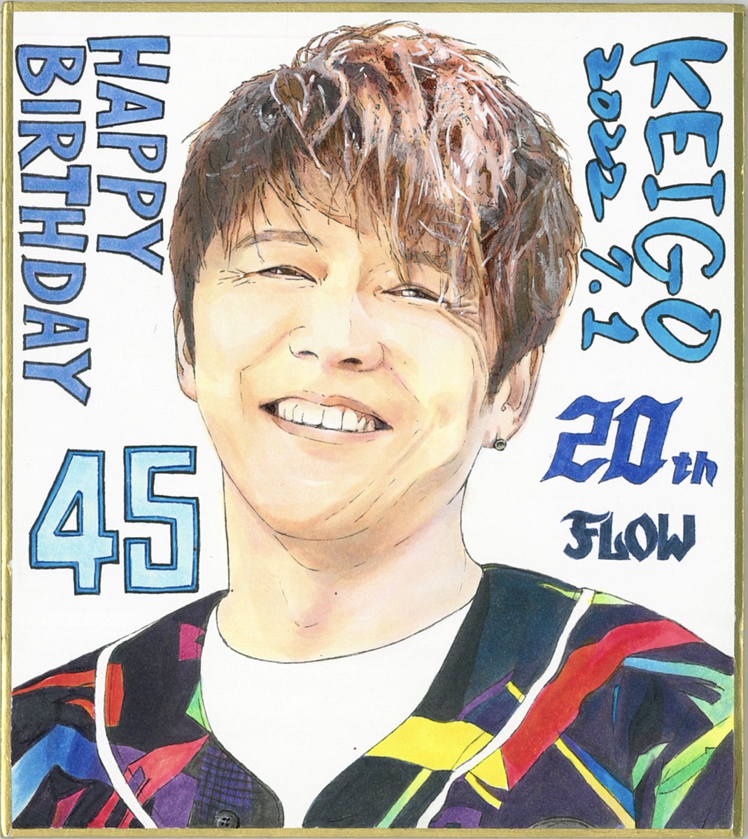 KEIGOさん 誕生日おめでとうございます✨🎉 【FLOW】Vocal『KEIGO』㊗️45歳😉 バースデー記念イラスト色紙 2022 FLOW 20th ANNIVERSARY【突入企画】 いよいよ、デビュー20周年!!! 盛り上がって参りましょうヽ(•̀ω•́ )ゝ✧ 次回、TAKE🎸 #KEIGO誕生祭 #26ers #FLOWの賽は投げられたツアー 完走‼️