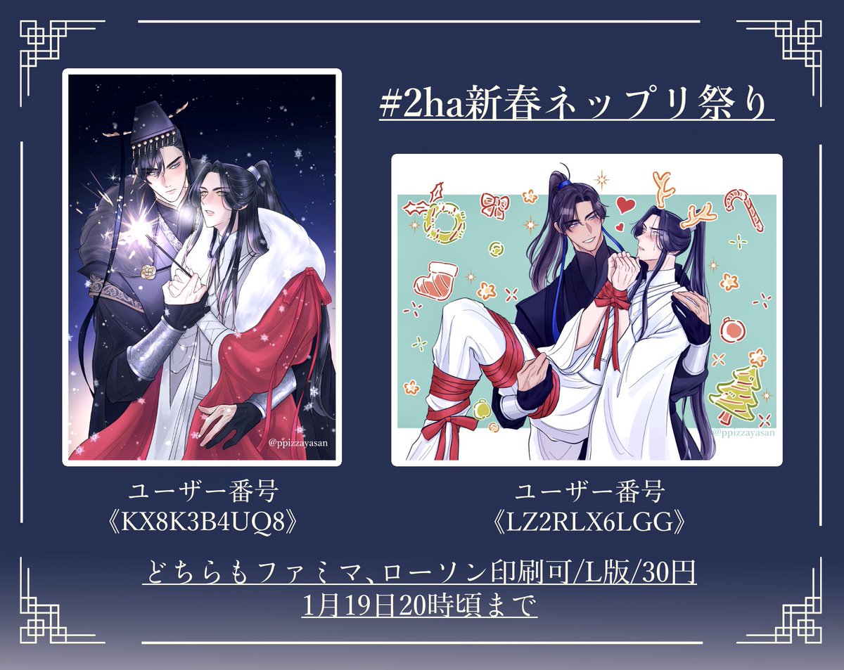 Happy New Year❄️2022❄️ 今年は肉まん先生の作品が日本語で上陸しますように🙏 どの媒体でもいいですよろしくお願いします!! ネップリ企画に参加しました!L,2L判、ローソンなど ユーザー番号: A3PYC6EG6G 有効期限: 2022-01-08 22時頃まで #2ha新春ネップリ祭り #2ha #二哈和他的白猫师尊