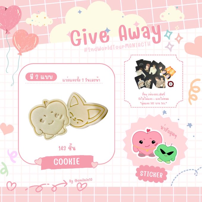 💓Give away for STAY💓 #2ndWorldTourMANIACTH 💘 คุกกี้ 143 ชิ้น 💘 สติ๊กเกอร์ 143 ใจ 💘 สุ่มแจก 143 บาท 1 รางวัล (กอว.งานอื่นที่ยังแจกไม่หมด ดองไว้ยังไม่ได้แจก จะขนไปให้หมด ช่วยรับไว้ด้วยน้า) 🗓️ 2 - 3 FEB 2023 📍กติไก่ เดินมาทำท่า💓แบบไหนก็ได้รับไปเลย #จิ้งจอกตัวน้อยๆ