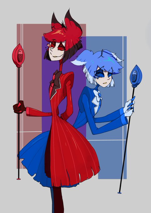 デザイン→@Anic917_eng 様💙💙 アラスターさんの2Pカラーちゃん可愛すぎません? They are so nice‼︎‼︎ #HazbinHotelFanart #Alastor #2pAlastor