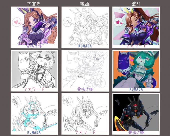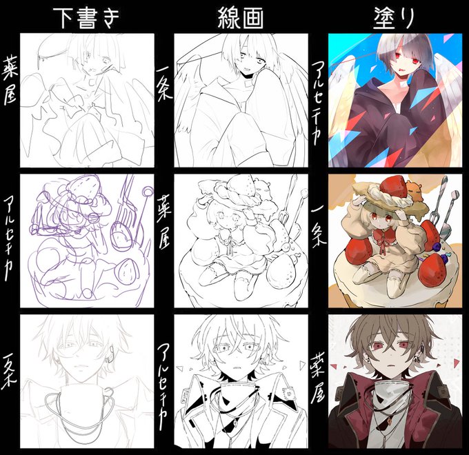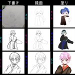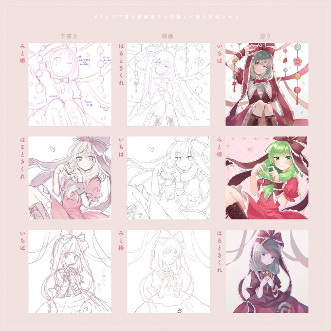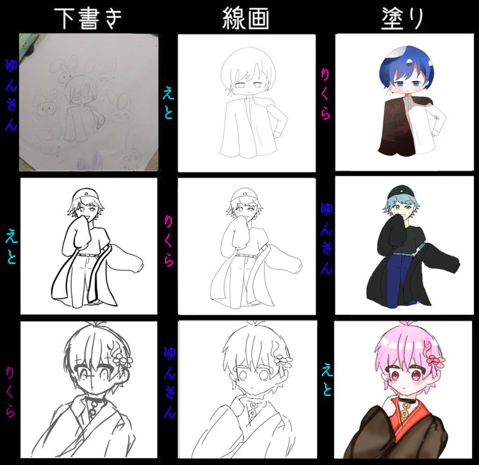 #3人で下書き線画塗りを交換して絵を完成させる をTwitterで画像検索
