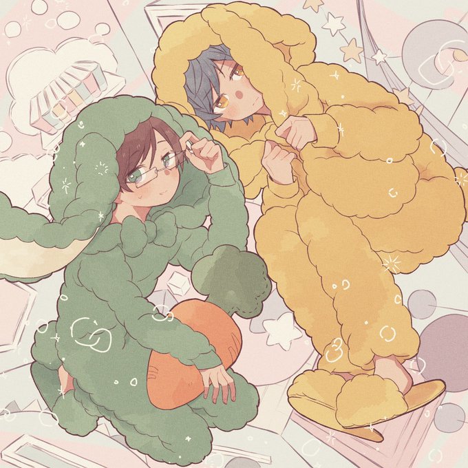 ひみつのぱじゃまぱ〜てぃ〜〜〜!!! 〜👑椋&円🍩ver.〜 ラフ:あいちゃん(@ ocep_sai) 線:千里さん(@ Mirror_1000ri_) 塗り:とまり(わ た し!) #3人で下書き線画塗りを交換して絵を完成させる