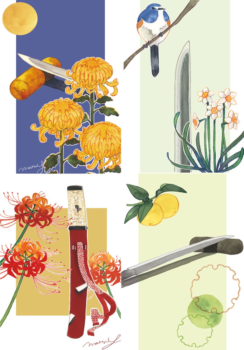 #3月になったので自己紹介 #水彩刀剣 で日本刀を主に他の風物も含めて描いています。 金属の表面の化学変化の見え方(錆や刀の焼入れなど)を表現するのに拘るタイプです。茎の錆や銘の描き方に特徴があるかも。他の金属にも興味あり。 刀はトレスする事なく計測によって手描きしています。