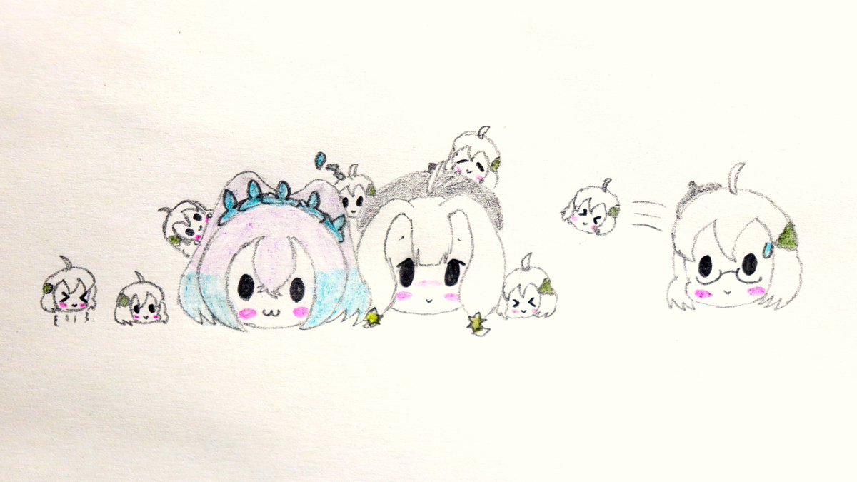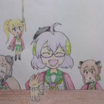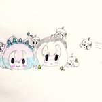 #3月10日は柏たんのバースデー #3月10日は水戸の日 お祝いイラストに色を塗りました! 改めて #柏たん 、おめでとうございます!🎉🎂✨🎁✨ヽ(≧▽≦)ノ #水戸たん #ふなたん #ふなとーたん #机バンバン の練習 #ビッカメ娘 ( #ナイセン ) #ビッカメ娘を描き隊 上から #八王子たん 「オメデトー!」