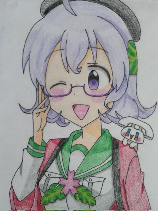 1日早いですが… #3月10日は柏たんのバースデー #柏たん 、お誕生日おめでとうございます!🎉(*≧∇≦)ノ🎂✨🎁✨🍃🐈️ お祝いにイラストを描きました!🎉✨🎁✨🐈️ #ビッカメ娘 ( #ナイセン ) #ビッカメ娘を描き隊 #模写 #色鉛筆 #絵描きさんと繫がりたい