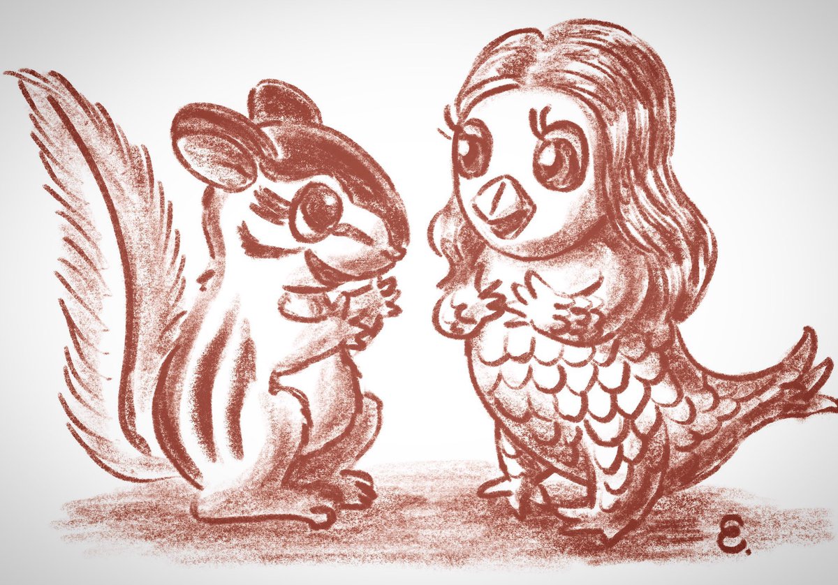 #1日1絵 #3月16日 の過去絵。 マンガ「リスの夢」 リスの絵描き歌⁈ アマビエとリス 「まるっと小動物展」だった年も #illustrator #イラスト #リス #シマリス #chipmunks