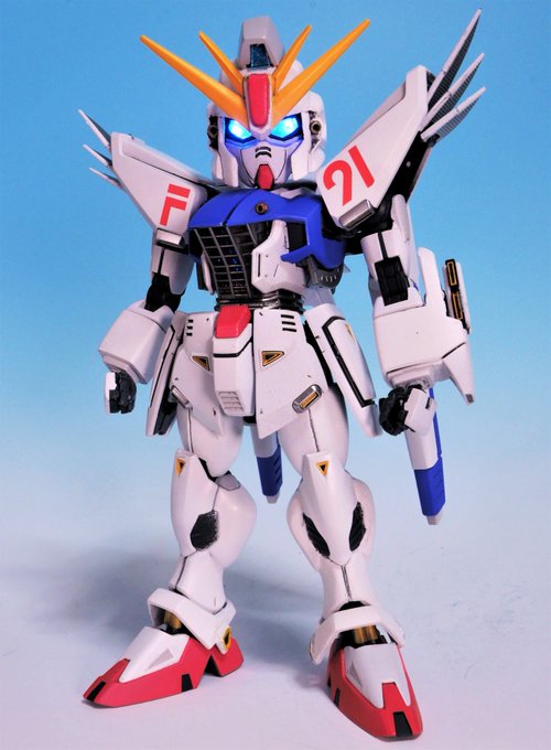 #3月16日は機動戦士ガンダムF91が公開された日なのでF91関連の画像貼ってお祝いする 「なんとおーっ!」一日遅れ😅 色々ミキシングして作ったSDのF91。 #夜のフィギュア撮影会 題 『気合い』遅刻