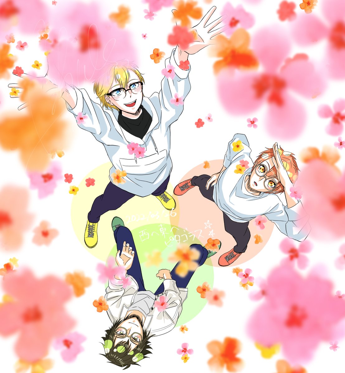 【コスプレ】 IDOLiSH7/ DiSCOVER THE FUTUREキャスト版 二階堂大和:おもちさん(@omochioicne) 和泉三月:えみるん 六弥ナギ:きぃさん(@rainbow0620_key) photo:涙ココロさん(@coco_nmd) #コスプレ #えみCOSるん #7色の手書きドット併せ2023 #えざき舎 #3月26日は西へ東へピタゴラスな日