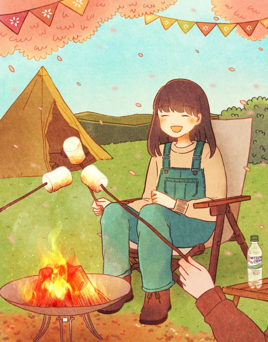 おいしい三ツ矢の矢羽根を描いてみました!🏕 一仕事終えて飲む #三ツ矢サイダー も、くつろぎながら食べる焼きマシュマロも、幸せなひとときです #3月28日は三ツ矢の日 #三ツ矢の矢羽根つくってみた #PR