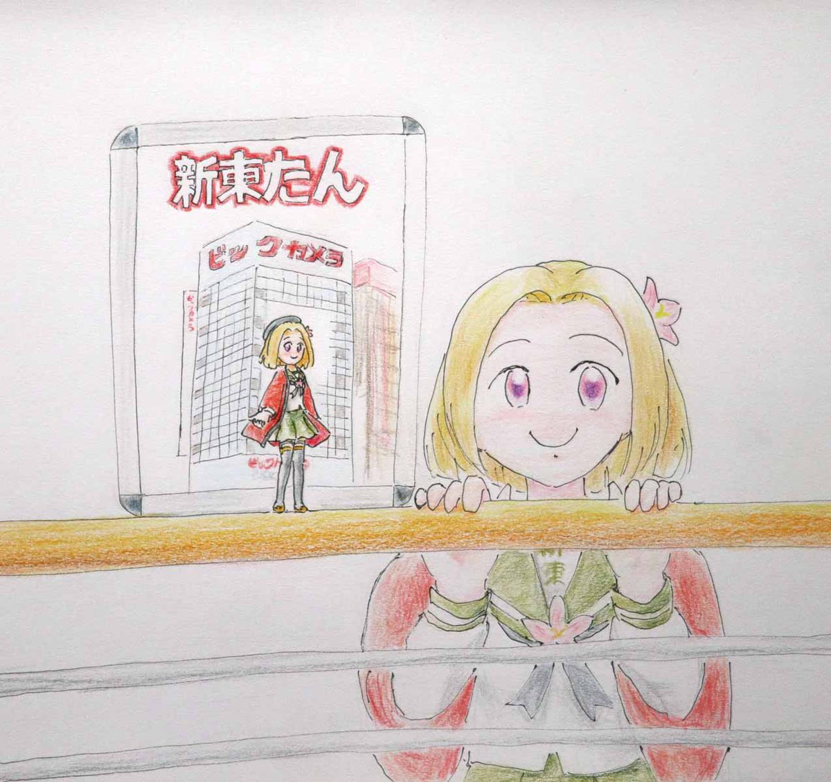 2022年3月3日は、新東たん(@Bic_shintoueki)の店舗誕生12周年記念日です。 記念に、新東たんを描きました。 おめでとうございます!\(^o^)/ #3月3日は新東たんのバースデー #ビッカメ娘を描き隊