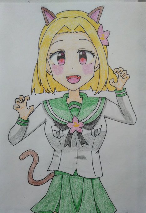 1日早いですが… #3月3日は新東たんのバースデー #新東たん 、お誕生日おめでとうございます!🎉🎂✨🎁✨ヽ(≧▽≦)ノ お祝いにイラスト描きました!🐈️ #ビッカメ娘 ( #ナイセン ) #ビッカメ娘を描き隊 #模写 #色鉛筆 #イラスト