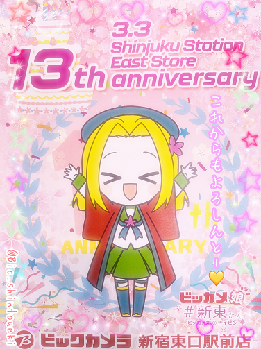 おはしんと~☀ 今日は #ひな祭り 🎎 そして…… #3月3日は新東たんのバースデー 🎂 たくさんの方々のおかげで ビックカメラ新宿東口駅前店は 店舗誕生✨13周年✨を迎える事ができました🌸 いつもありがとうございます💛 新東たんはこれからも ゆる~く つぶやきますので 応援よろしんと~です🥰❣️