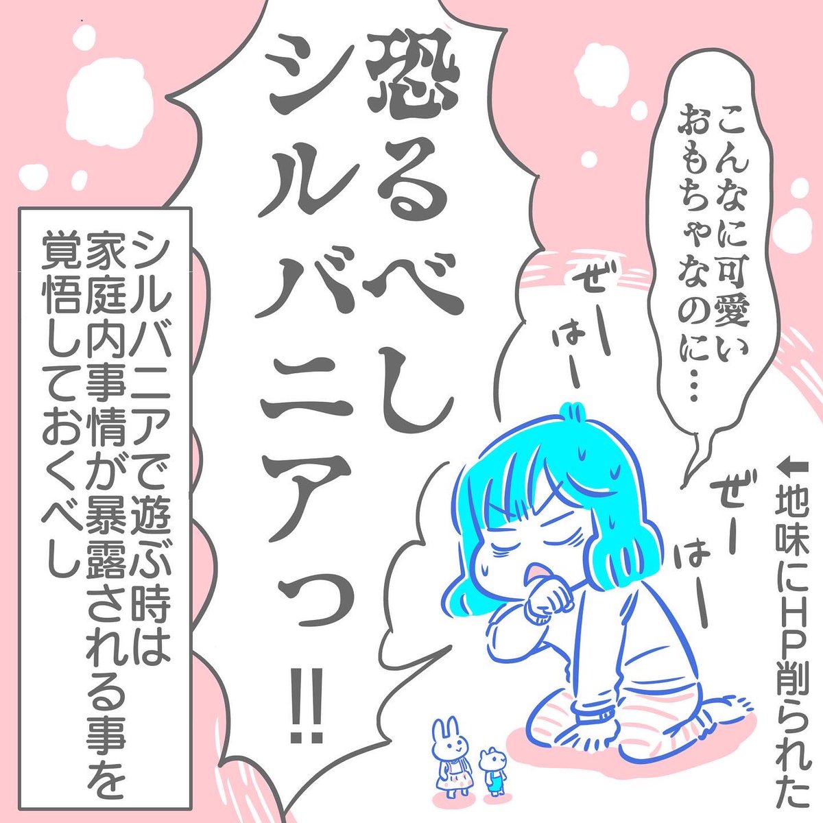 『楽しい楽しいシルバニアファミリー』 これを友達の家でやられた日にゃあ…昇天しちゃう😇 #子育て漫画 #子育て絵日記 #育児漫画 #子供とあそぶ #シルバニアファミリーに夢中 #家庭内事情筒抜け #家庭内事情喋りすぎ #家庭内事情がばれる #3歳娘 #恐るべし