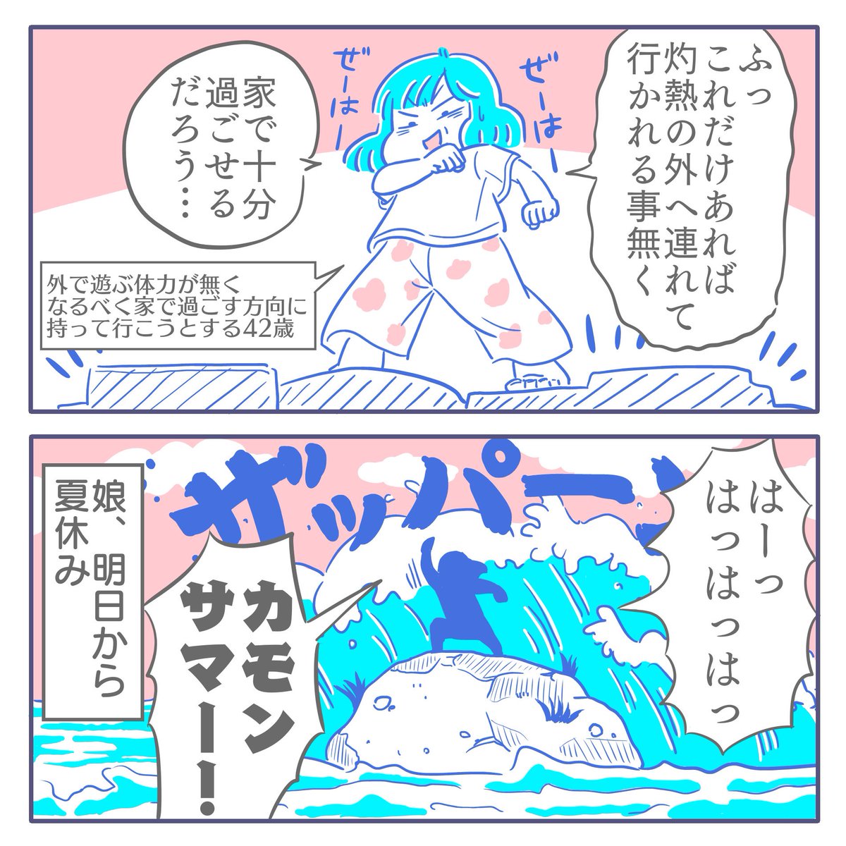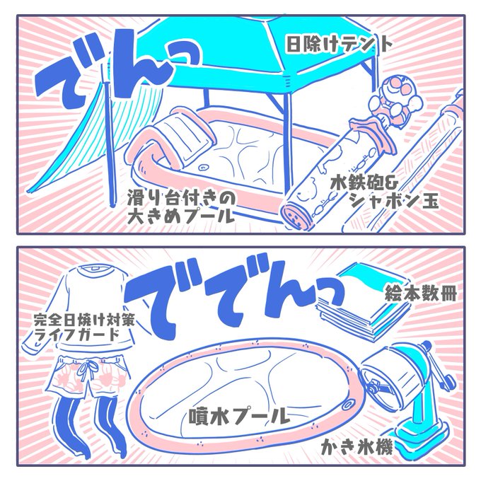 『灼熱の公園を嫌う母の備え』 即席で設置できる噴水プールも買いました😅 灼熱の公園は生命の危機を感じるので、お庭に日陰作って水浴びで何とか暑さを乗り切りたいです😇 #子育て漫画 #育児漫画 #恐怖の夏休み #幼稚園児ママ #3歳娘 #暑さに弱い #夏の公園は行きたくない #高齢ママにはしんどい