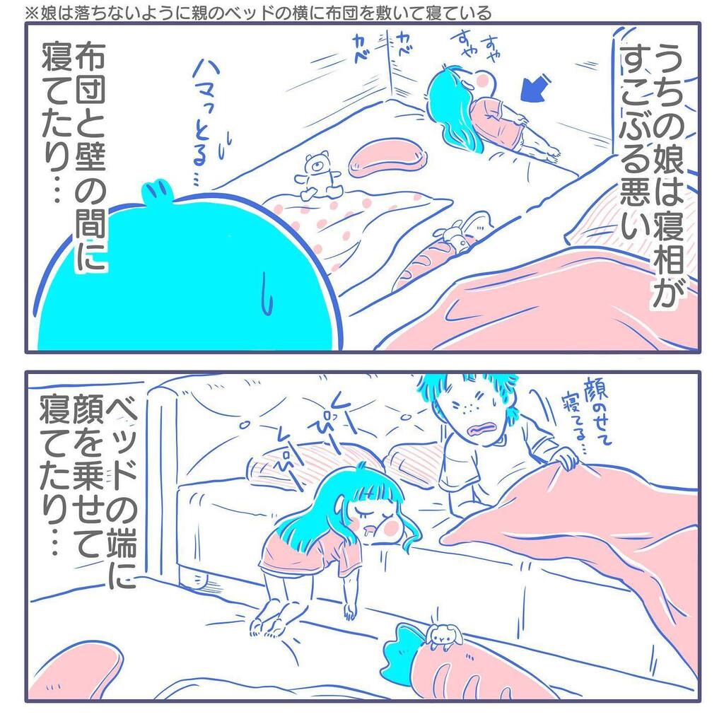 『娘の寝相』 裸で寝るの気持ちいいのは分かるけど…ほぼ毎日オネショシーツ洗っとる😓 #子育て漫画 #育児漫画 #育児エッセイ漫画 #オネショ #寝相悪すぎ #オネショシーツとシーツを毎日洗濯は辛い #オネショシーツ活躍中 #3歳娘 instagr.am/p/CjEizXIPL1B/