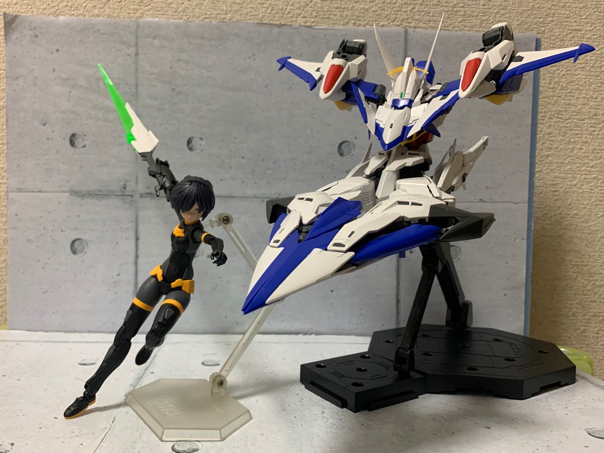 #RANRANフォト 真夜中に夢中になって遊んでた(( 可変型MGと並べて遊ぶってのもアリなのか!奇跡的に腕パーツとエクリプスのブレードがハマるのテンション上がるぅ^o^乗せたりするにも良いスケール差だ( ̄∀ ̄) #30MS #30ミニッツシスターズ #ガンプラ #フィギュア撮影友の会