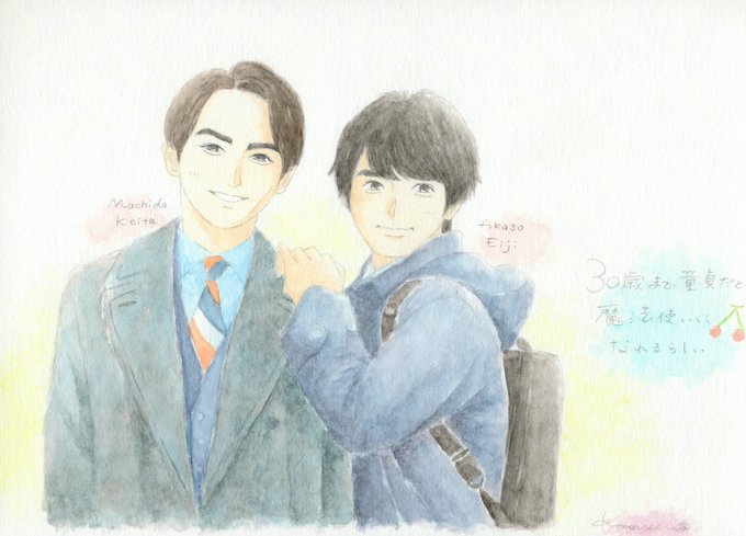 最近ハマっているチェリまほのお2人を描いてみました(*^^*)🌸🍀心があったまる素敵なお話だと思います🤗赤楚くんも町田くんも綺麗だから絵になる😳友達と映画観に行くのが楽しみです🙌 #30歳まで童貞だと魔法使いになれるらしい #チェリまほ #赤楚衛二 #町田啓太 #イラスト #illustration #水彩画